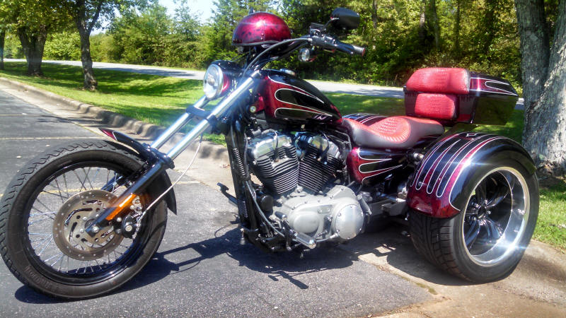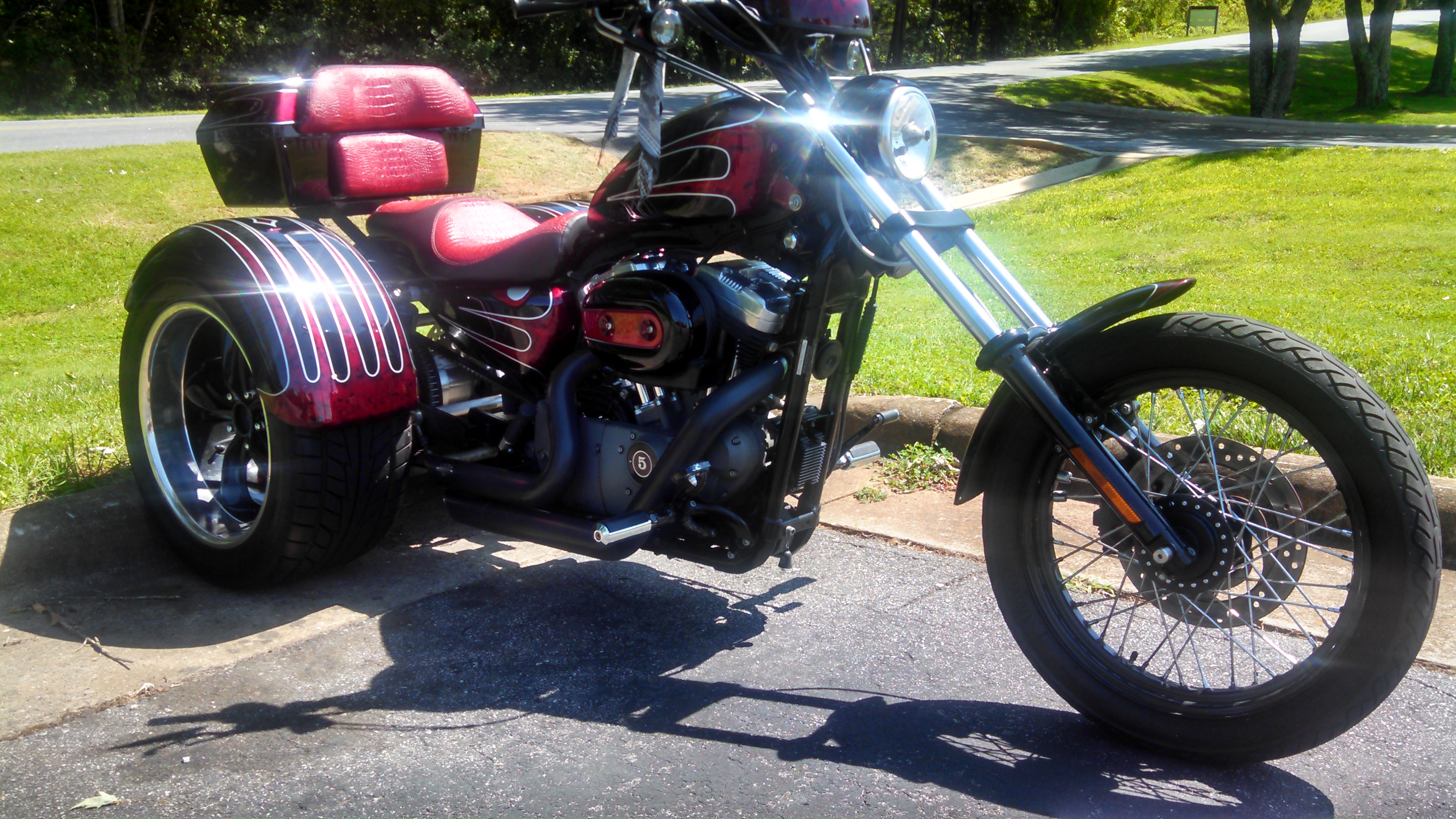 Here's my 2007 Nightster 1200 Trike...she's got the 18* kit with 8 over tubes. I love it and she's a conversation starter everywhere we go.